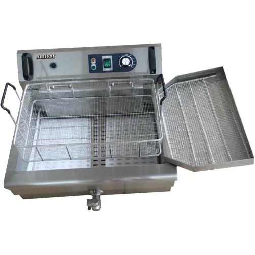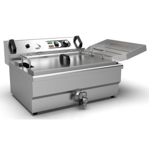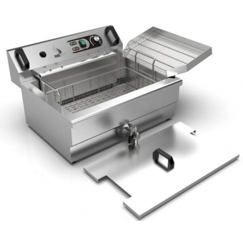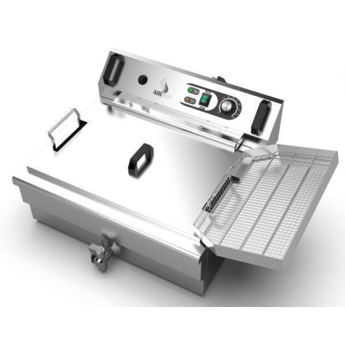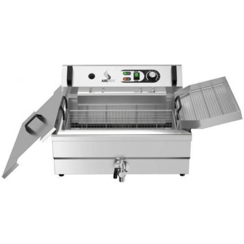 Электрическая чебуречница-фритюрница AIRHOT EC-6 позволяет готовить чебуреки, пирожки, картофель фри и другие продукты с золотистой корочкой. Подходит для предприятий общественного питания и домашнего использования. Настольная модель с крышкой изготовлена из нержавеющей стали, имеет чашу объёмом 31 л и корзину с ручкой из термостойкого пластика. Крышка помогает поддерживать чистоту и сохранять тепло. Есть кран для удобной очистки чаши от масла и специальный поддон для стекания масла с продуктов. Модель оснащена электромеханическим управлением с регулятором температуры от +60 °C до +200 °C и защитным термостатом, который отключает питание при перегреве.