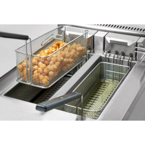Профессиональная электрическая фритюрница с двумя жарочными ваннами — высокопроизводительное оборудование для приготовления блюд во фритюре на предприятиях общественного питания. Модель сочетает мощность, вместительность и удобство эксплуатации, подходит для заведений с высокой проходимостью.