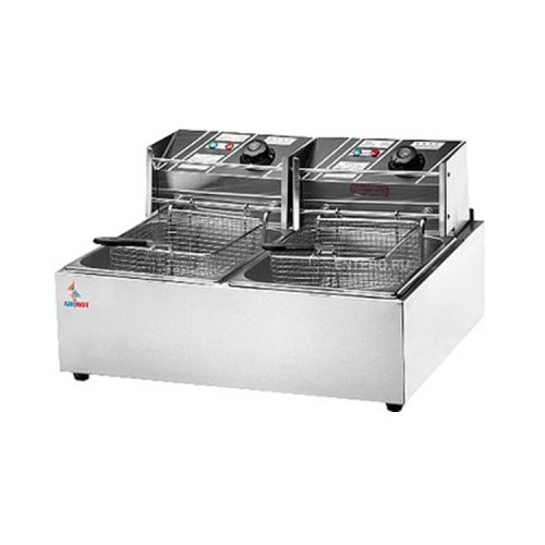 Электрическая фритюрница AIRHOT EEF6+6 предназначена для приготовления разнообразных кулинарных изделий во фритюре. Обеспечивает получение золотистой корочки у чебуреков, пирожков, картофеля фри, сыра, рыбных палочек, роллов и других блюд. Подходит для предприятий общественного питания и домашнего использования.