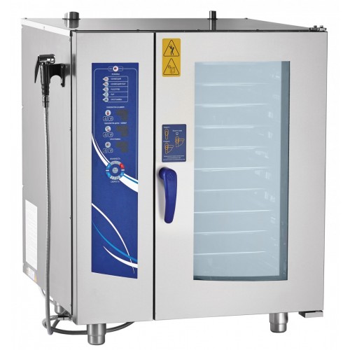 Удобная панель управления на русском языке. Вентилируемая дверь духовки предотвращает риск получения ожога рук с внешней стороны дверки. Механизм замка дверки действует по принципу "свободные руки" - дверку можно закрывать одним движением руки. Двухходовой механизм открывания дверки духовки обеспечивает безопасность персонала от воздействия горячего пара. Автоматика обеспечивает быстрый выход пароконвектомата на рабочий режим. Низкое энергопотребление (по сравнению с аналогами) снижает эксплуатационные расходы на приготовление блюд. Жировой фильтр легко снимается без дополнительных инструментов. Конструкция духовки позволяет мыть ее изнутри под струей воды. Полуавтоматическая мойка с применением режима "Пар".
