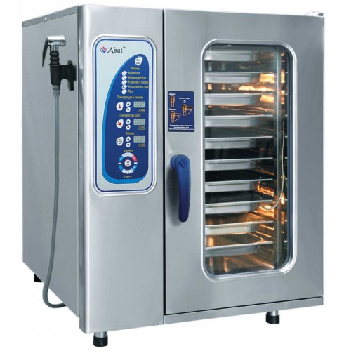 Пароконвектомат Abat ПКА 10-1/1ПМ предназначен для обжаривания, приготовления на пару, бланширования, запекания и других видов тепловой обработки продуктов на предприятиях общественного питания и торговли. Оборудование заменяет сразу несколько видов приборов: плиту, конвекционную печь, жарочный шкаф, духовку, опрокидывающуюся сковороду, пищеварочный котел, фритюрницу и др. Приготовленные в пароконвектомате блюда сохраняют все полезные вещества. Модель оснащена подсветкой, легкосъемным жировым фильтром, душем для мойки и дверью с двойным остеклением.