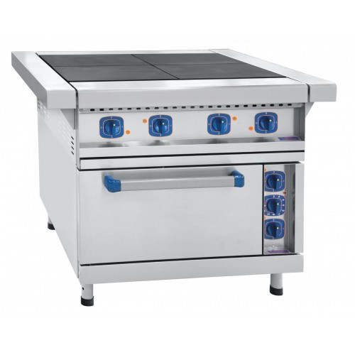 Духовка имеет раздельную регулировку мощности верхнего и нижнего блоков ТЭНов. Рабочий диапазон температуры духовки 65-270 С, установленный аварийный терморегулятор предохраняет шкаф от перегрева 320 С. Плита имеет регулируемые по высоте ножки.