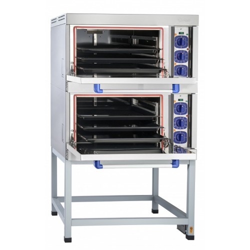 Каждая духовка покрыта высококачественной эмалью и укомплектована 3-мя эмалированными противнями размером 530x470x30 мм. Раздельная регулировка мощности верхнего и нижнего блоков ТЭН-ов. Рабочий диапазон температуры 20-270°С, установленный аварийный терморегулятор предохраняет шкаф от перегрева свыше 320°С. Регулируемые по высоте ножки.